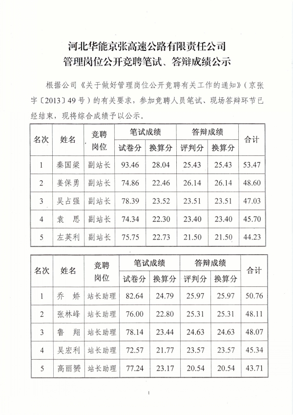管理崗位公開競(jìng)聘筆試、答辯成績(jī)公示